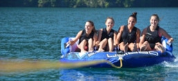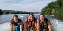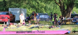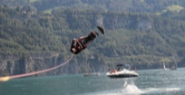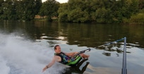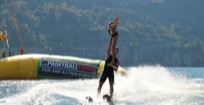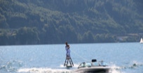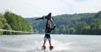 Part of our equipment is a 370HP waterski towboat (Malibu Response Barefoot Edition), two docks as well as an equipment trailer, which allows us to be ready for show skiing at any time and in any place. In our Trailer, we store: Regular skis, pyramid base skis, monoskis, stepoff-skis, swivelskis, shoeskis, trickskis, kneeboards, hydrofoil (Sky-Ski)  wakeboard, discs,  hooverboard, flyboard, costumes and much more...